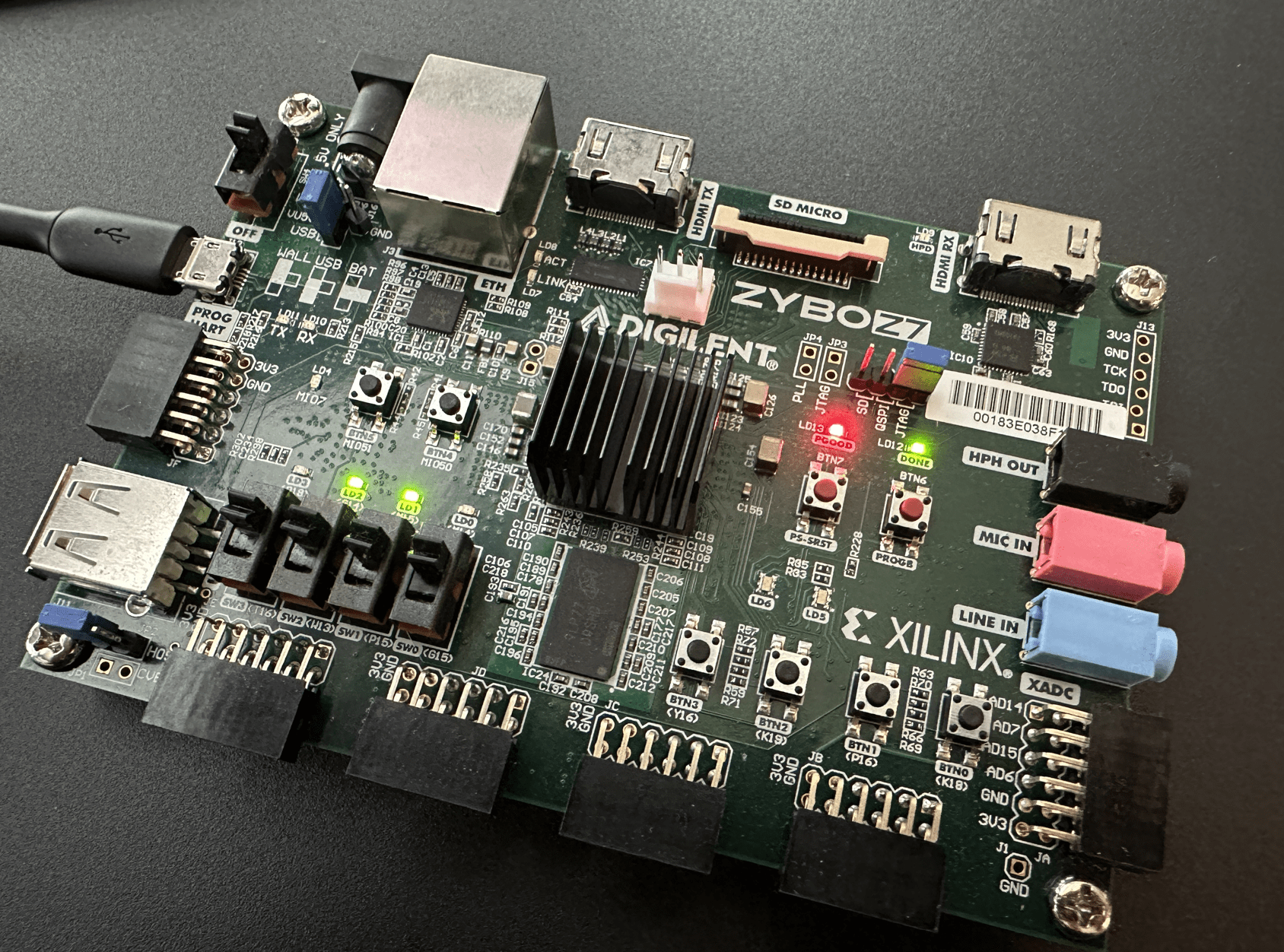 If you look at Digilent’s Zybo Z7 XDC file, the Pin to which the LED element of the Zybo Z7 board is physically connected is M14, M15, G14, D18,